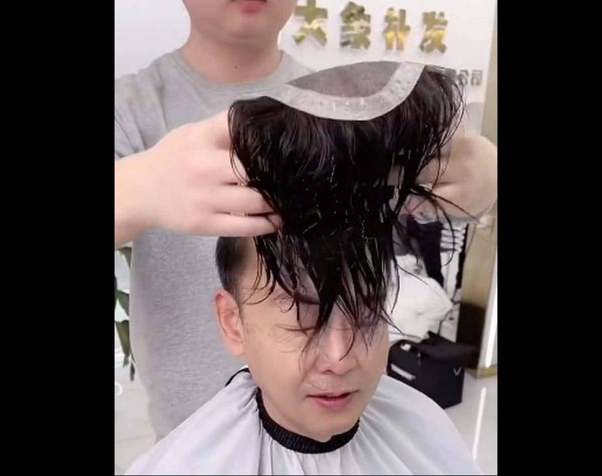 Чоловікові було 40 років, але через лисину він виглядав значно старше. На щастя, він звернувся до перукаря. Спочатку той виміряв голову клієнта, а потім підрівняв волосся та наніс на нього спеціальний клей, до якого прикріпив пишну перуку.