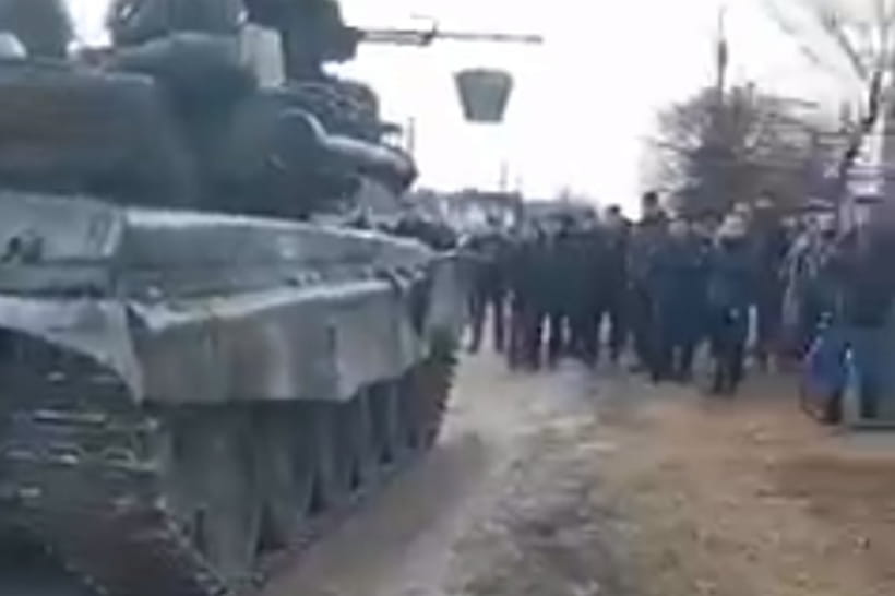 Почнемо з відео з села на Чернігівщині під назвою Корюківка, де хоробрі українці голими руками зупинили російський танк і змусили його розвернутися: