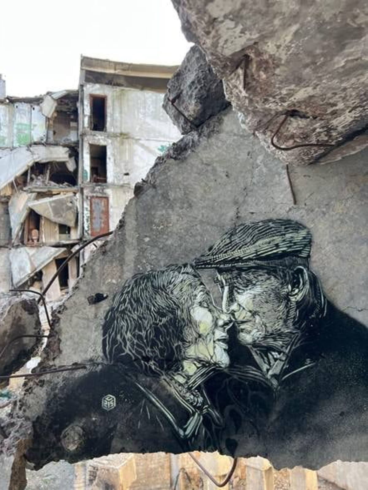 Ткаченко каже, що француз мріє опинитися у Бахмуті та намалювати там портрети наших загиблих героїв. Його остання робота була створена у центрі столиці, де її презентуватимуть найближчим часом. Також у Бородянці на розвалинах 25 квітня з'явився портрет Лесі Українки.