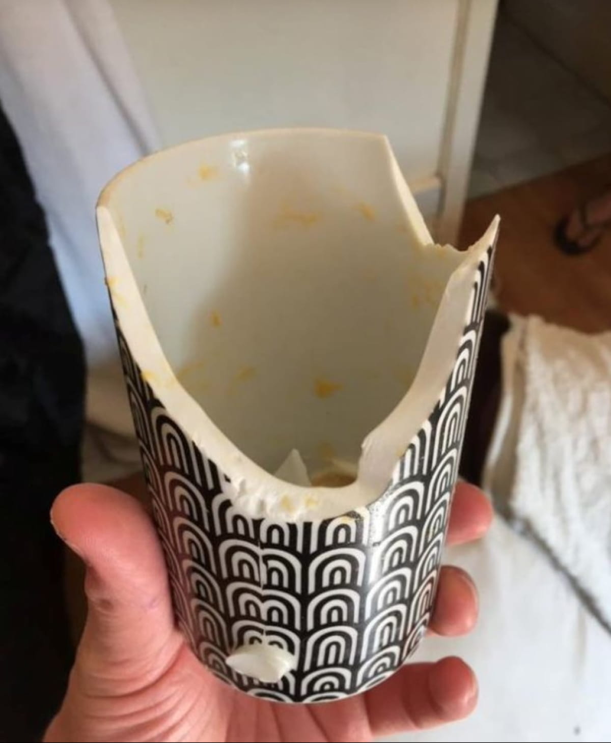 Коли вона доторкнулася до рідини холодною ложкою – чашка вибухнула "як фонтан", а гаряча рідина бризнула їй у праву сторону обличчя. В результаті цього на шкірі залишилися серйозні болісні опіки.