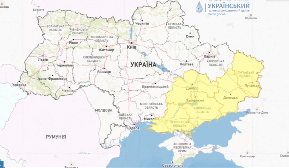 У п'яти областях України ввели І рівень небезпеки, жовтий