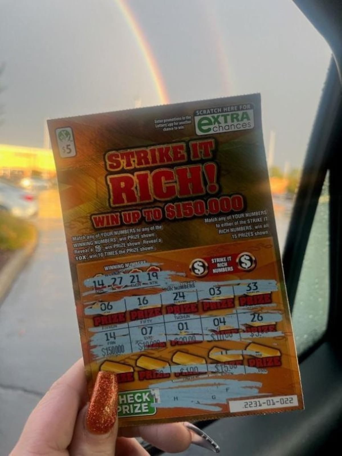 Неймовірно, але квиток був виграшним і приніс їй $150 тисяч. Коли жінка дізналася про суму виграшу, то сфотографувала щасливий білет на тлі веселки. Наразі переможниця не визначилася, що робитиме з грошима.