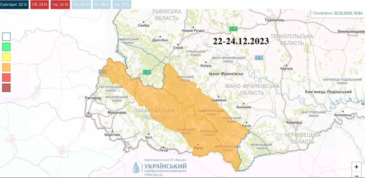 Також синоптики попереджають про значну сніголавинну небезпеку (ІІІ рівень), що обумовлена снігопадами та хуртовинами на високогiр'ї Закарпатської та Івано-Франківської областей.