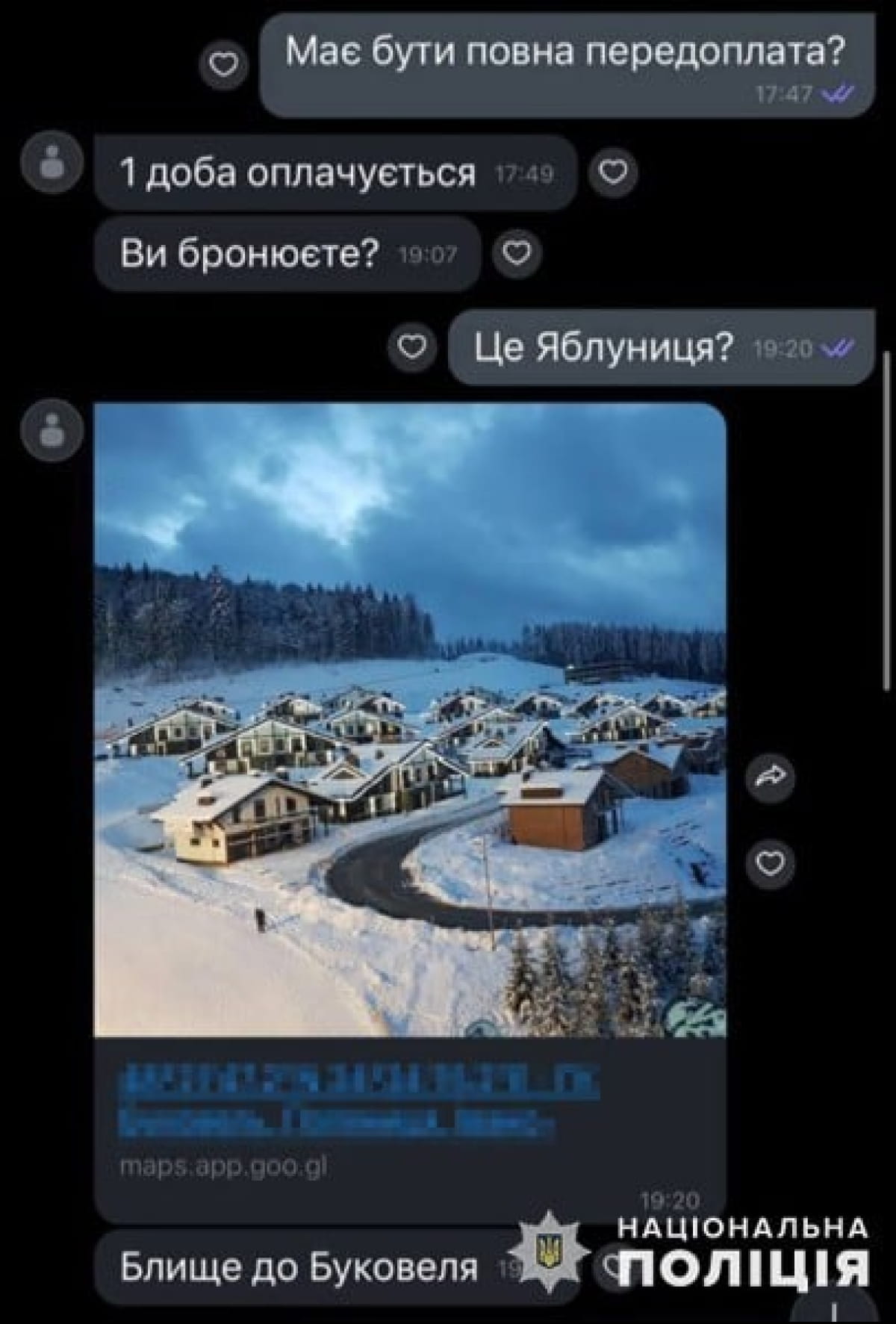 Після отримання коштів шахрайка припиняла відповідати чи продовжували спілкуватися та навіть надсилала замовникам геолокацію, де нібито знаходиться котедж. Однак коли вони прибували на вказане місце, то помічали, що такої нерухомості там немає, а телефон "орендодавця" був вимкнений.