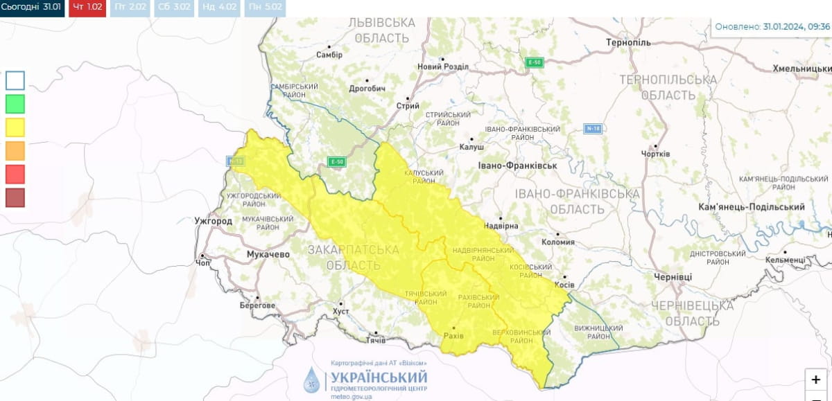 Крім того, оголошена помірна сніголавинна небезпека (2 рівень). 31 січня – 1 лютого вона очікується на високогір'ї Закарпатської та Iвано-Франкiвської областей.