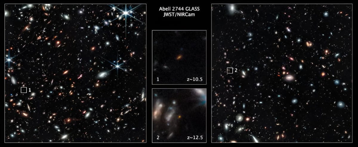 В процесі дослідження астрономи скористалися гравітаційним ефектом скупчення галактик Abell 2744 як лінзою, що дозволило збільшити та виявити світло від віддалених, маленьких і тьмяних галактик, які існували на самому початку часів.