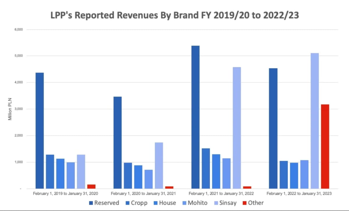 "Ми підозрюємо, що LPP маскувала фіктивний вихід за допомогою бухгалтерії. Понад дві третини зростання виручки у 2022–2023 роках, а саме $732 млн або 20% сумарної виручки, припадало на бренд "Інше". У попередні три роки ця стаття ніколи не перевищувала 2%", – йдеться у звіті.