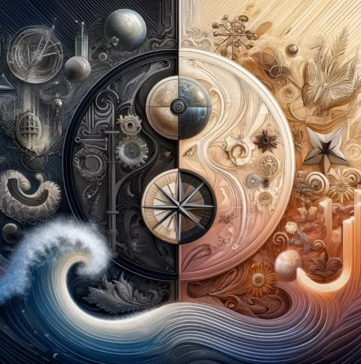 - Логічно-структурний або "чоловічий" підхід (ліворуч): Якщо вам подобаються геометричні форми, шестерні та компаси, це може свідчити про вашу схильність до логічного, систематичного мислення та здатність аналітично розв'язувати проблеми.