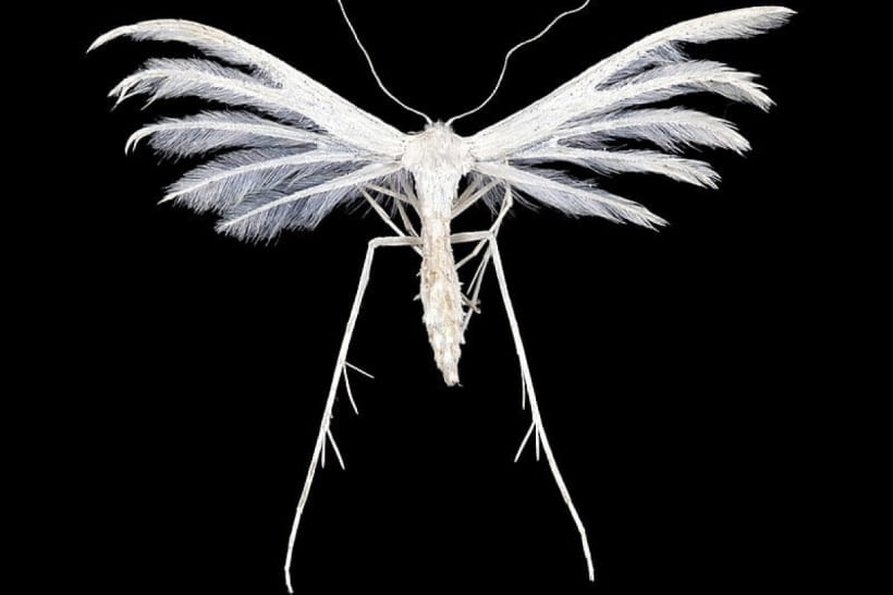 Цією таємничою комахою-привидом виявилася пальцекрилка. Ця комаха походить із родини метеликів, але відрізняється від своїх родичів особливими крилами. Вони нагадують пташине пір’я через свою особливу будову.