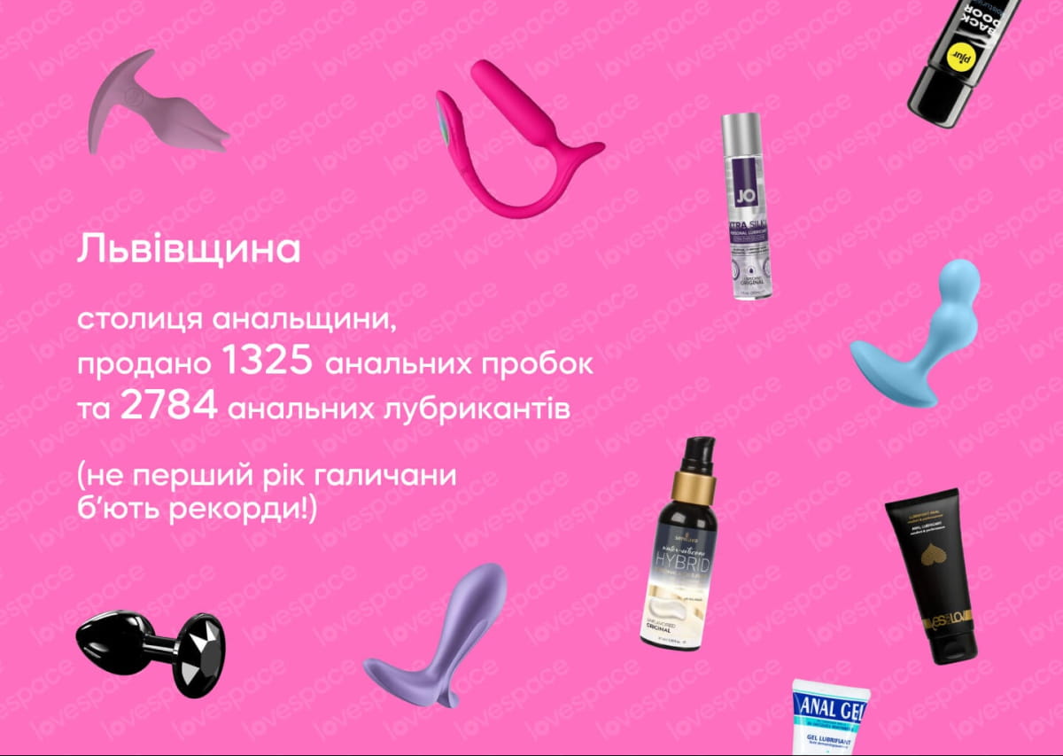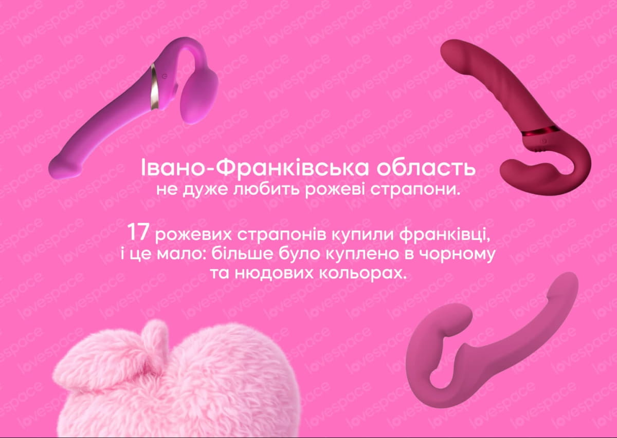 На заході країни теж є свої рекорди. Львівщина не перший рік очолює рейтинги за анальними аксесуарами та лубрикантами. Закарпаття зробило ставку на реалістичність – понад сотню замовлень відповідних виробів. А Хмельниччина несподівано стала лідером за кількістю рожевих вібраторів-"кроликів".