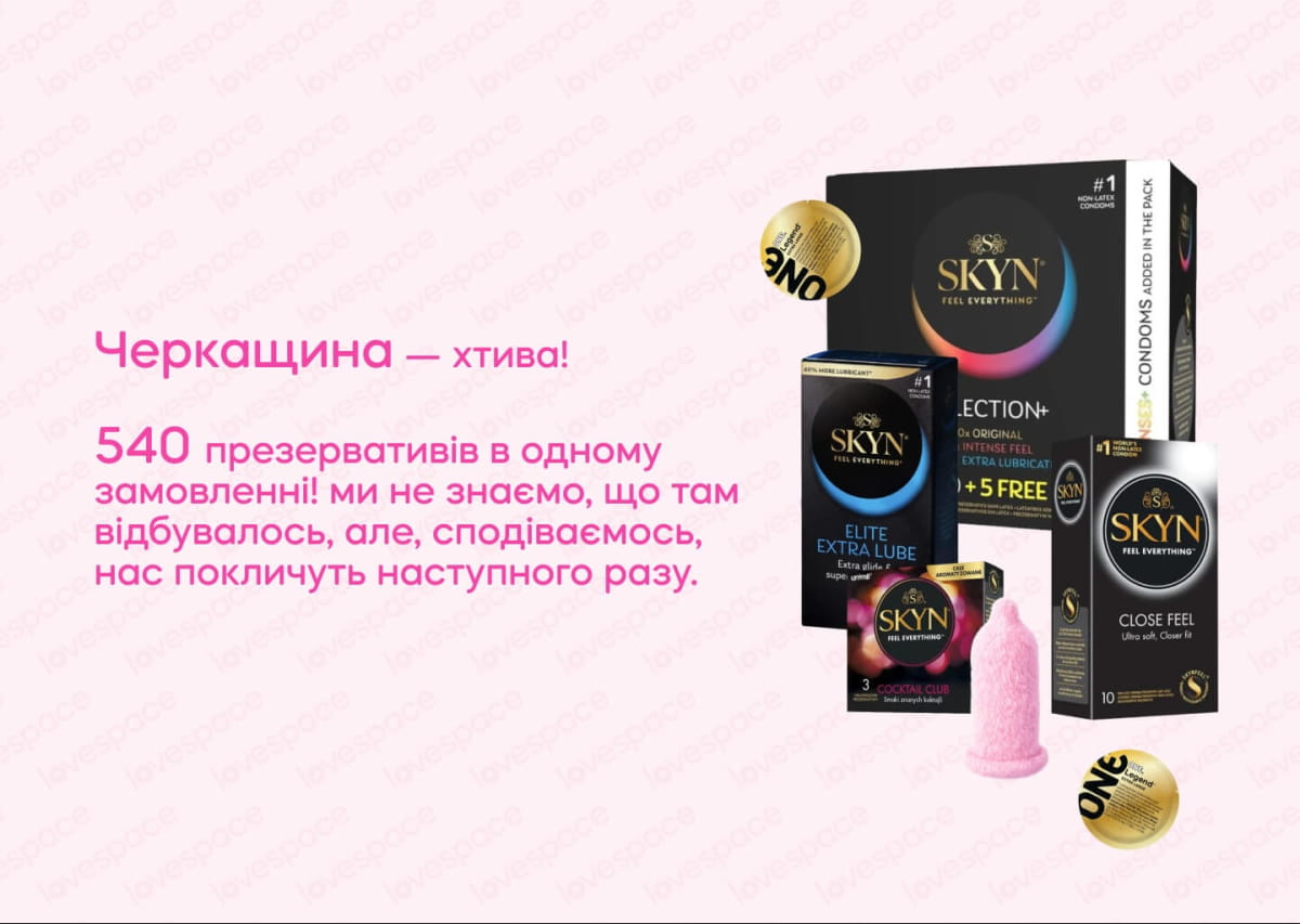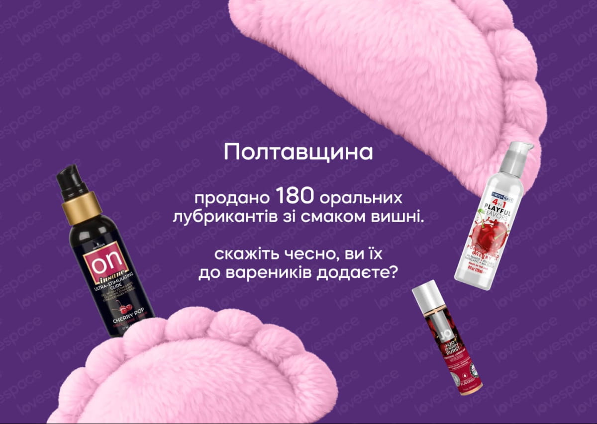 У центральних регіонах – своя специфіка. Полтавщина віддала перевагу оральним лубрикантам зі смаком вишні, тоді як Кіровоградщина продемонструвала відповідальне ставлення до інтимного здоров’я, активно купуючи тренажери Кегеля. Черкащина здивувала масштабом – одне замовлення включало одразу 540 презервативів.