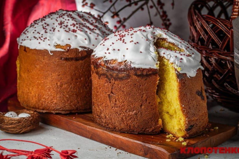 Змастіть верхівки жовтком і випікайте при температурі 180°C приблизно 40–45 хвилин. Готові паски остудіть у формах.