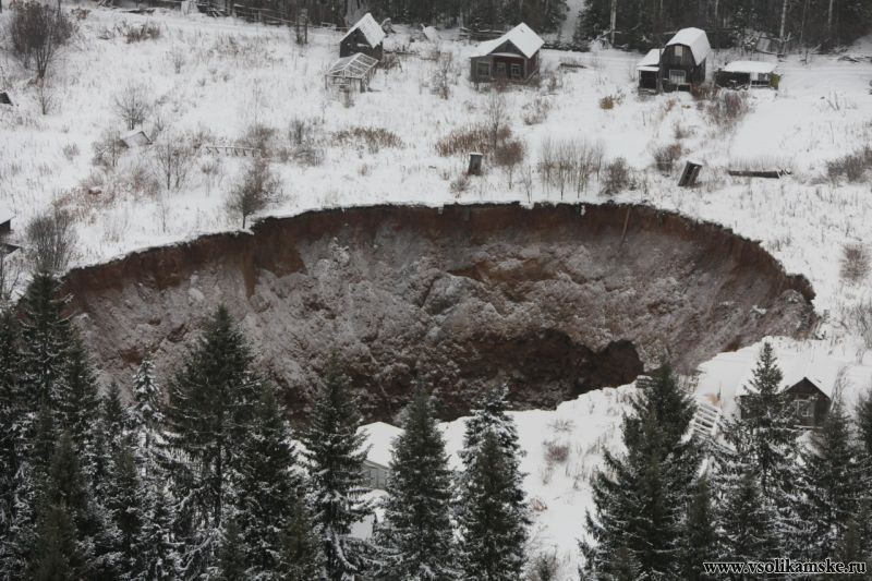 Величезний провал в Солікамську Пермської області, про який багато ЗМІ писали на початку року, значно збільшився в розмірах за останні 9 місяців. Як повідомляє видання Inforesist, про зростання воронки в рази свідчать знімки, зроблені з повітря.