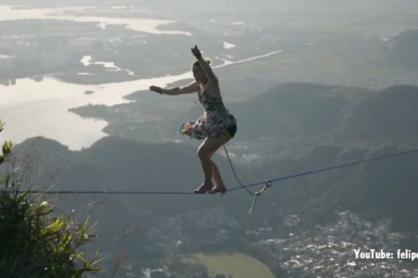 26-річна Фейт Дікі (Faith Dickey) зі штату Техас (США) пройшла по канату, натягнутому на скелі Педра-да-Гавеа в Ріо-де-Жанейро (Бразилія) на висоті 840 м. Як пише The Sun, дівчина була взута в яскраво червоні туфлі на високих підборах. При цьому до неї був прикріплений лише один невеликий страхувальний трос.