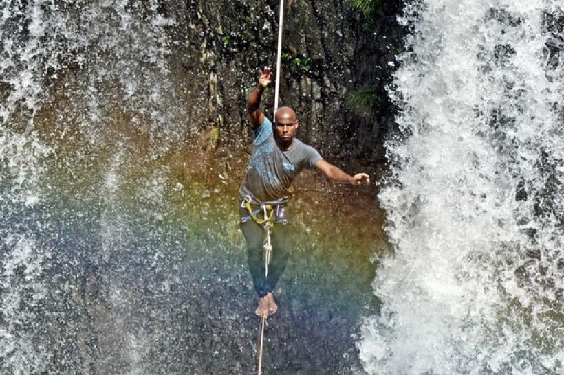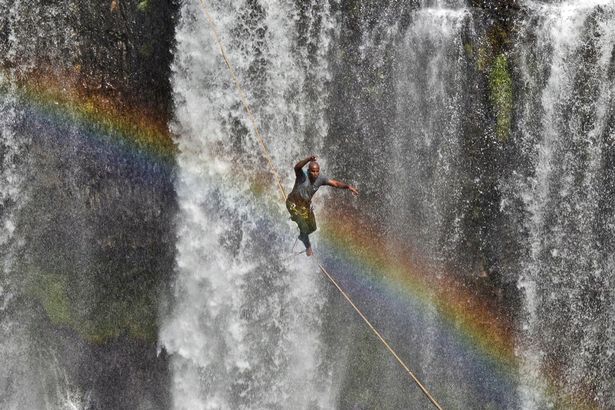 34-річний еквілібрист Реджинальдо Гомес пройшов по канату над прірвою біля водоспаду Фумаса у Бразилії в той момент, коли над водою з'явилася веселка.