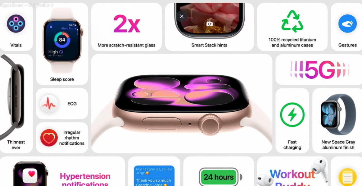 Apple Watch Series 11 стал самыми тонкими и легкими часами компании. Корпус вдвое устойчив к царапинам по сравнению с Series 10, а чип S11 обеспечивает поддержку всех AI-функций watchOS 26, в том числе анализа данных о здоровье. Новые функции включают выявление гипертонии и оценку сна через Sleep Score, который анализирует фазы сна, регулярность и пробуждение. Благодаря технологии 5G RedCap часы остаются на связи даже в отдаленных локациях. Стоимость начинается от 399 долларов.
