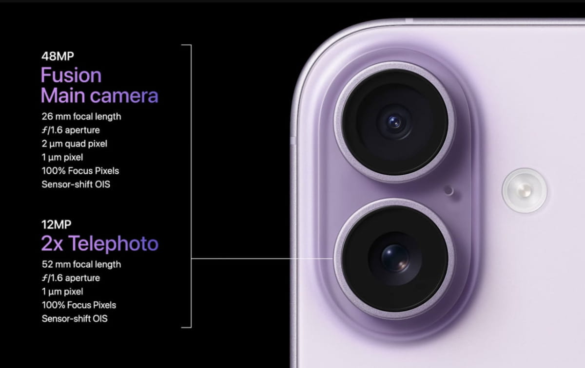 Система камер Fusion в Pro-моделях включает в себя три 48-мегапиксельных объектива и фронтальную камеру на 18 МП с технологией Center Stage. Поддерживаются режимы 1x, 2x, 4x и 8x для телеобъектива, а цифровой зум достигает 40x для фотографий.