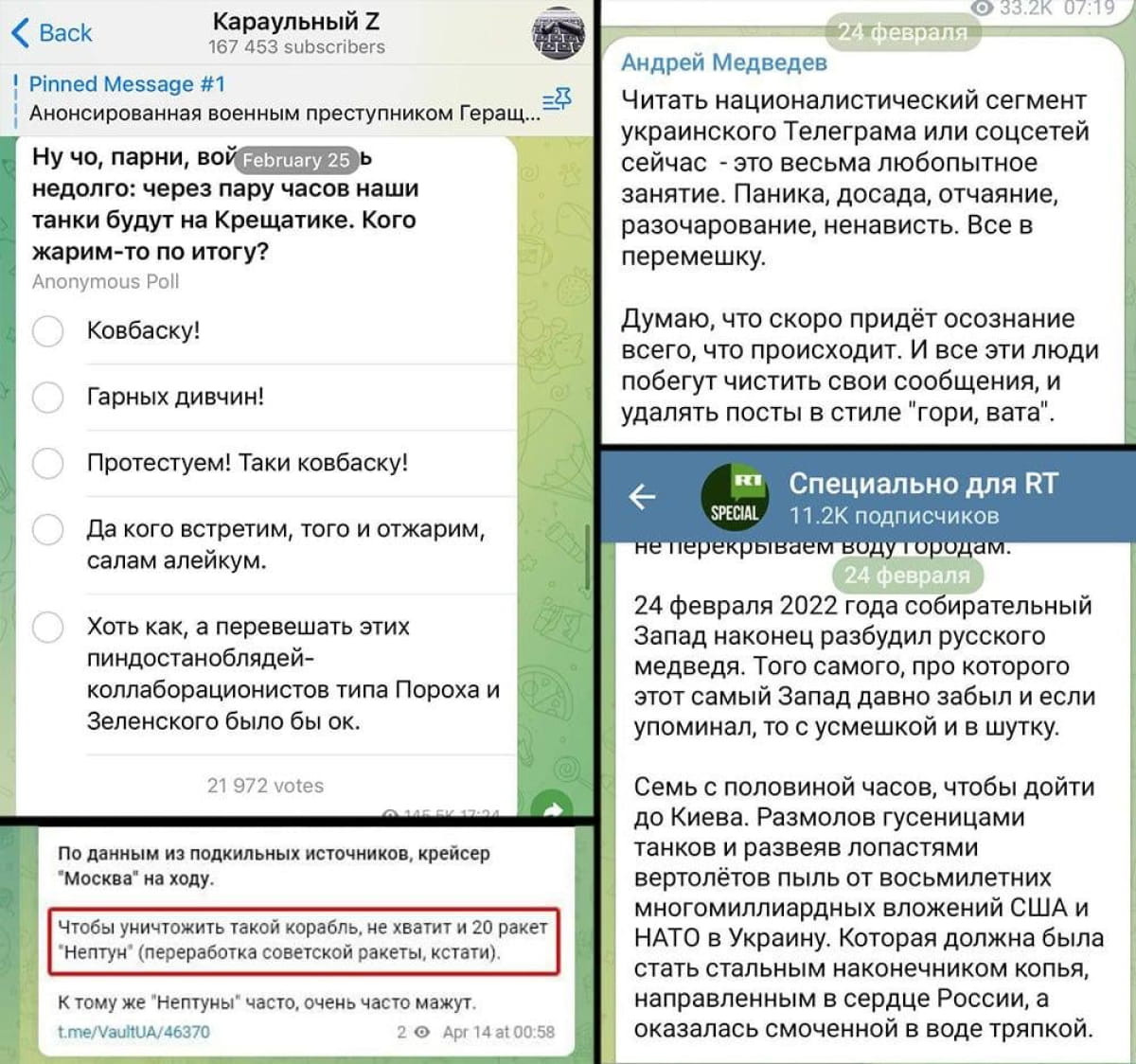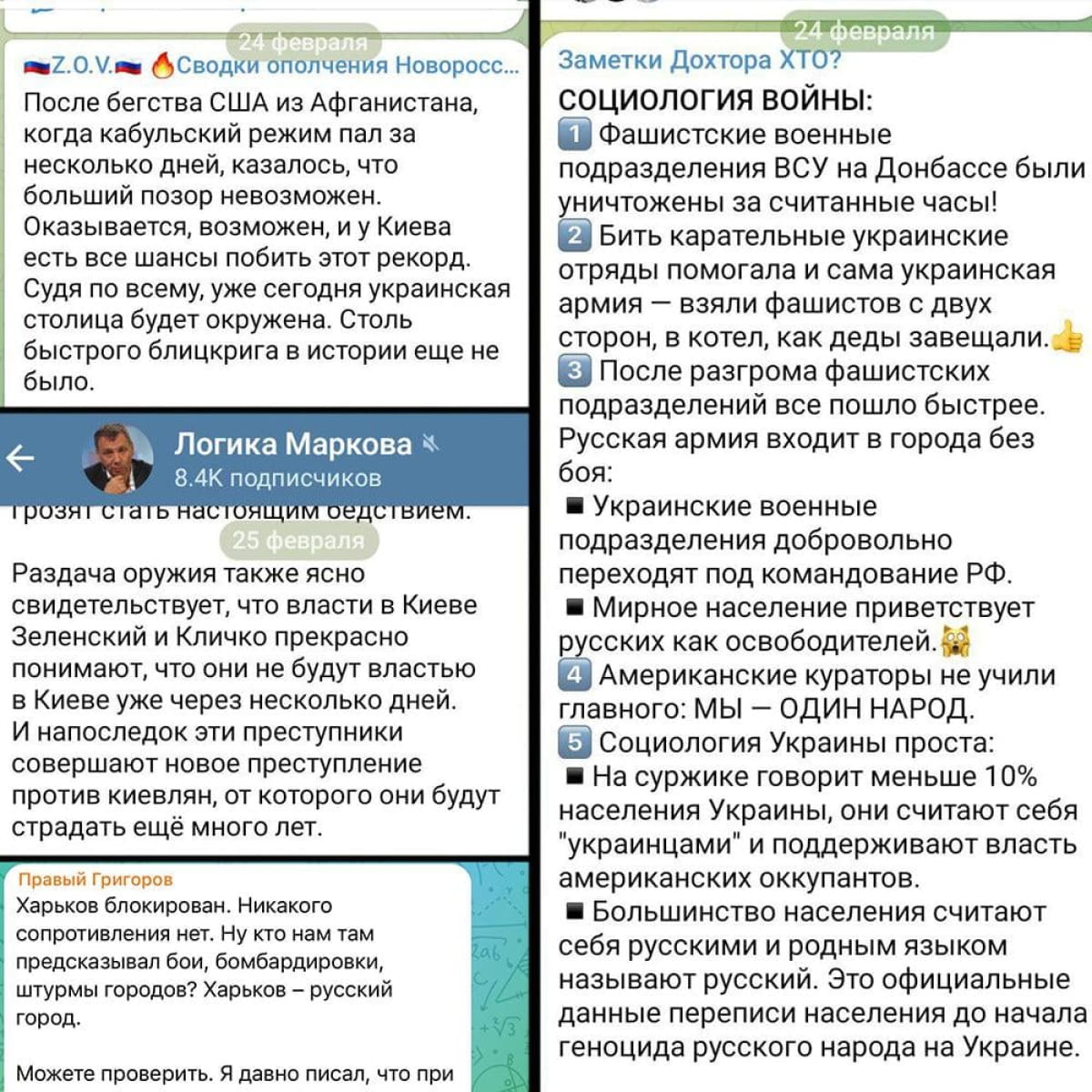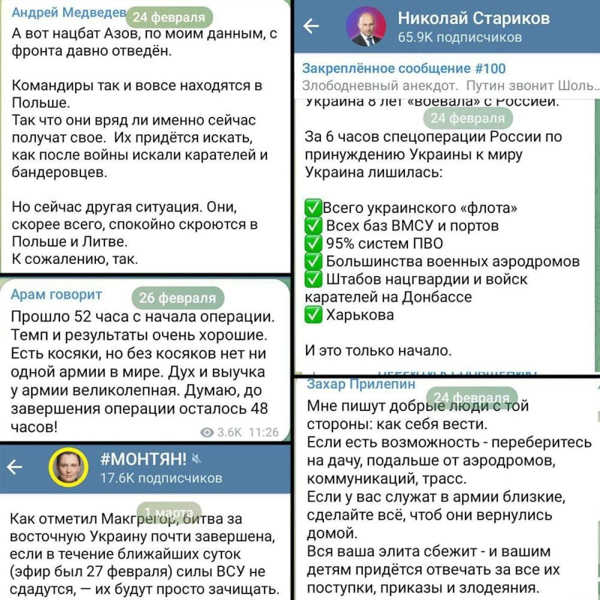 24 февраля – четыре года с начала полномасштабного вторжения в Украину. Мы собрали посты российских пропагандистов и обычных россиян первых дней войны – ожидания блицкрига, которые разбились о реальность и храбрость украинского сопротивления.
