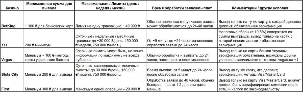 Лицензионный гемблинг в Украине предусматривает игру с выводом только с помощью банковских карт. Национальный регулятор считает этот способ единственно возможным для контроля за игрой. При этом депозиты могут осуществляться электронными методами Google Pay и Apple Pay. Но они не позволяют вывести деньги. Однако при использовании карты напрямую вывод доступен. Ограничениями выступают только лимиты.