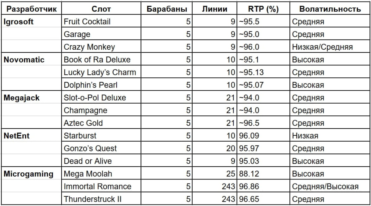 Провайдеры – это фирмы-разработчики игр. Их команды придумывают сюжеты и механики для того, чтобы игроки постоянно находили в своем игровом опыте что-нибудь новое и интересное. Еще 20 лет назад таких разработчиков было не более 50 на весь мир. Однако сейчас их более 500 и все они производят интересные продукты. Но в Украине сформировался свой особый топ провайдеров, игры которых больше всего понравились нашим соотечественникам. Среди таких есть Igrosoft, Novomatic, Megajack, Net Ent, Microgaming и некоторые другие. Ниже представлена таблица с известнейшими играми лучших разработчиков в нашей стране: