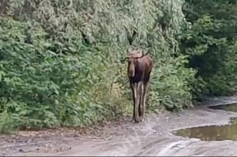 Люди также не испугались животного. Единственное, что их беспокоило, это трасса, которая была рядом. Они отметили, что если лось выйдет на дорогу, то с ним может случиться беда.