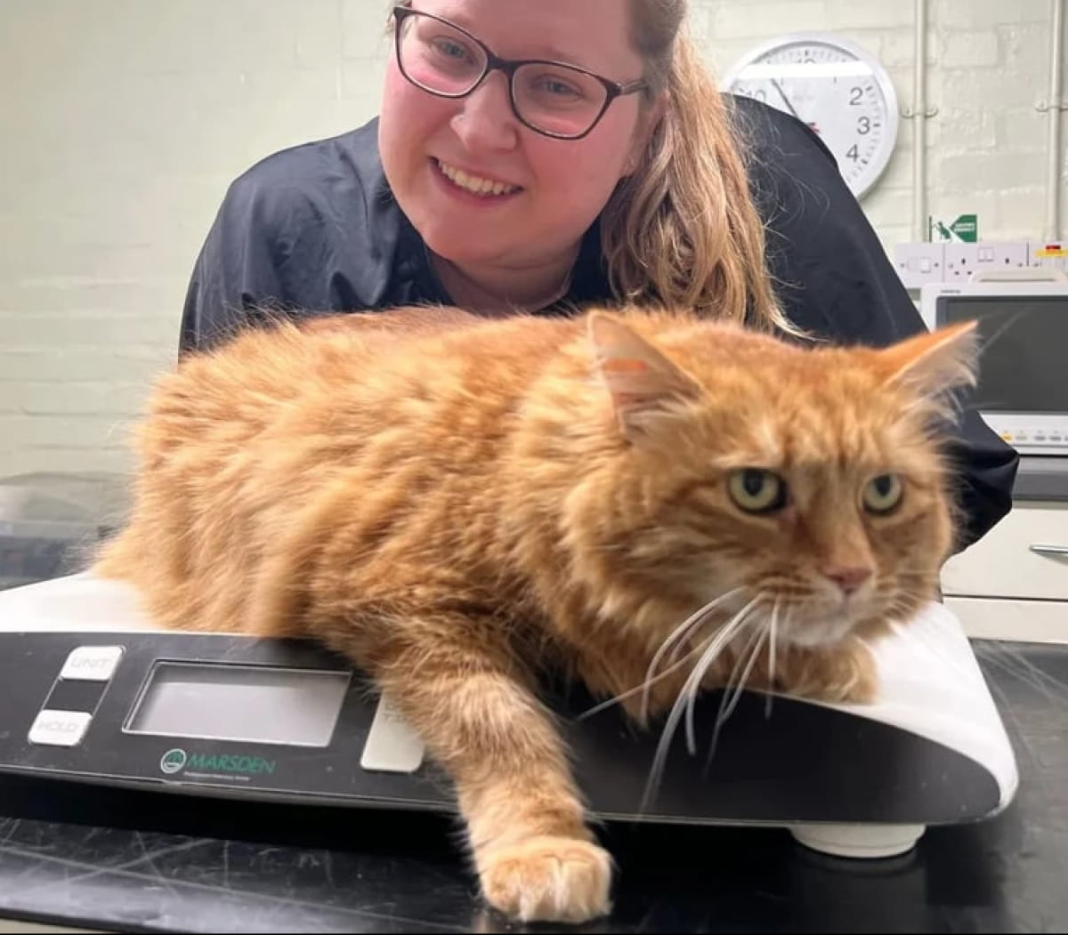 Кот Моисей весил почти 10 кг, а во время последнего взвешивания показатель снизился до 9,1 кг.