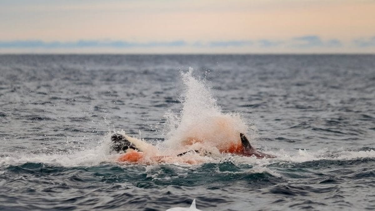 Экспедиция Norwegian Orca Survey отправилась на очередное наблюдение за косатками у Шервёя. Все шло по плану – команда следила за кормлением стаи, когда вдруг вода вокруг лодки приобрела красный оттенок.