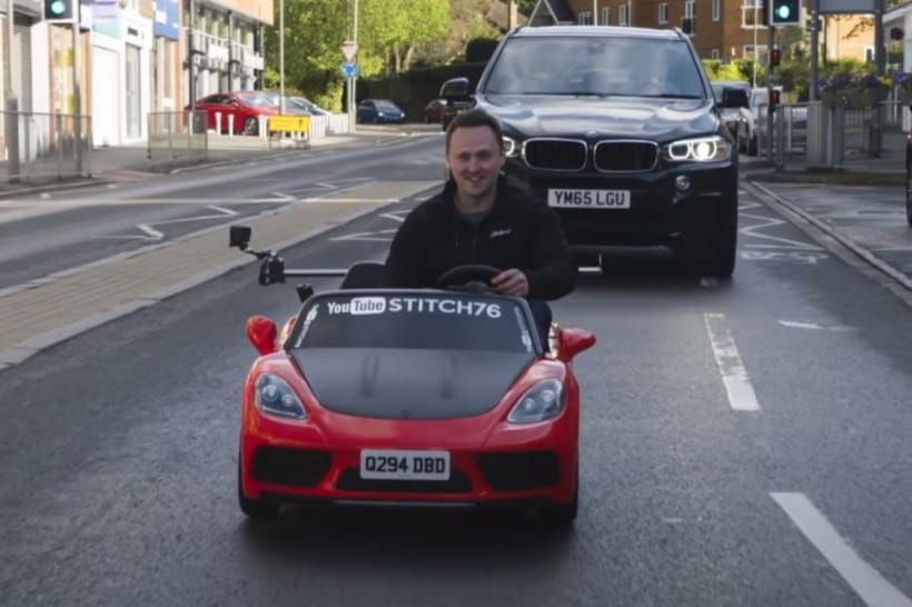Житель Великобритании по имени Джеймс разъезжал по дорогам общего пользования на детском электромобиле Super Sport XXL. Об этом сообщает "Дивогляд" со ссылкой на YouTube мужчины.