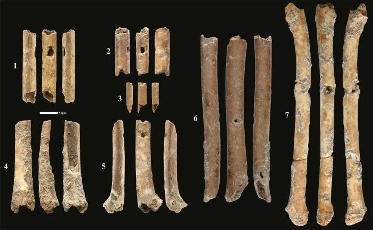 Археологам на месте раскопок удалось обнаружить семь костяных аэрофонов. Один из них был целым, а другие фрагментированными.
