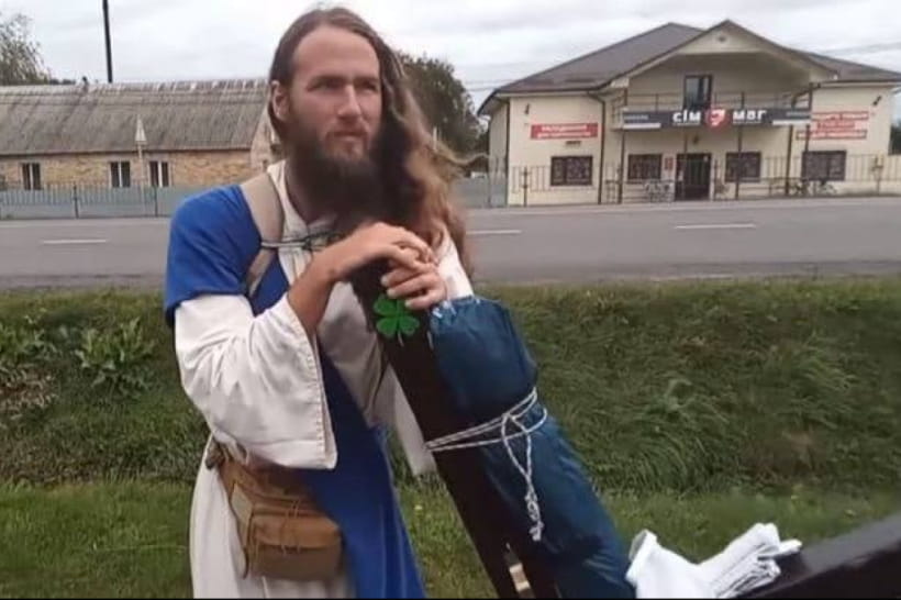 Из Варшавы в Киев с 25-килограммовым крестом идет мужчина, который оделся как Иисус Христос. Об этом сообщает "Дивогляд" со ссылкой на местные Telegram-каналы.
