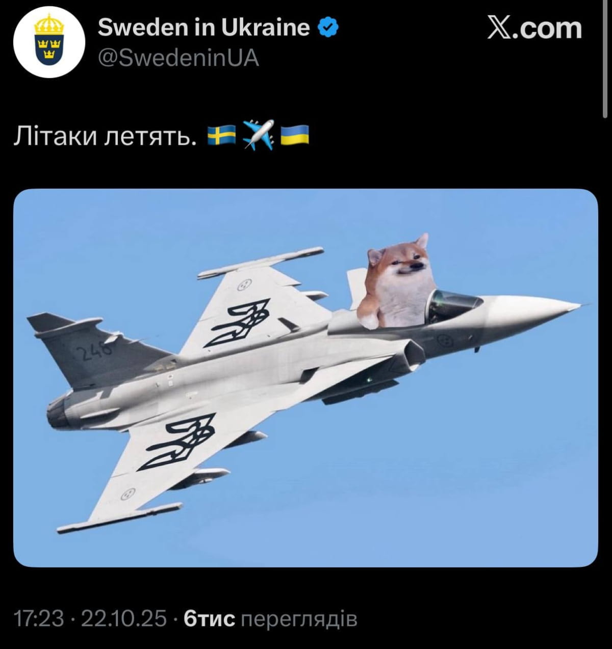 Посольство Швеции в Украине с юмором отозвалось на подписание соглашения о поставках истребителей Gripen. Об этом сообщает "Дивогляд".