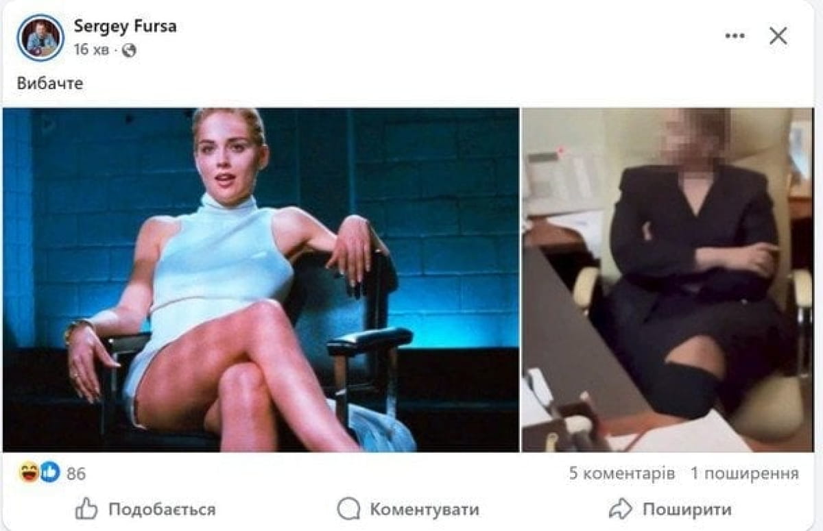 Экономист Сергей Фурса тоже присоединился к волне шуток, опубликовав в Facebook мем с кадром из культового фильма "Основной инстинкт".