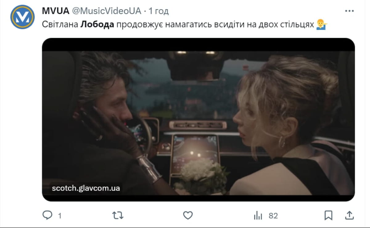 Речь идет о творении"Киев – Ницца", созданном в Риге. По словам Лобода, она рассказала об истории влюбленных, которых разделила расстояние. Согласно сюжету, девушка убегает со свадьбы к любимому, которого она давно любит.