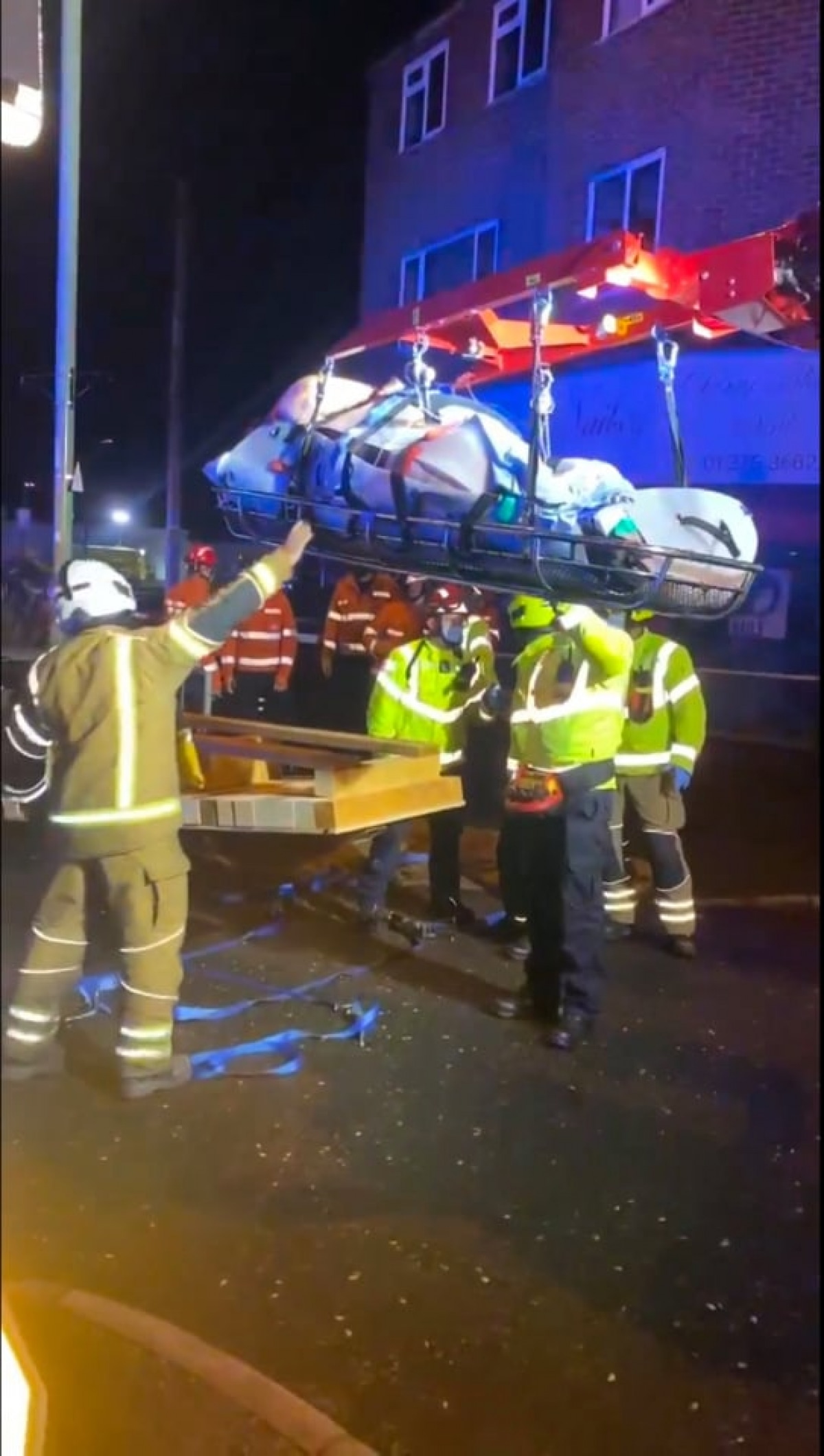 Спасатели забирали мужчину из окна его комнаты, чтобы поместить его на подъемник. Во время операции было привлечено около 30 человек. В больнице ему должны были провести операцию на лимфедему в паху и ногах.