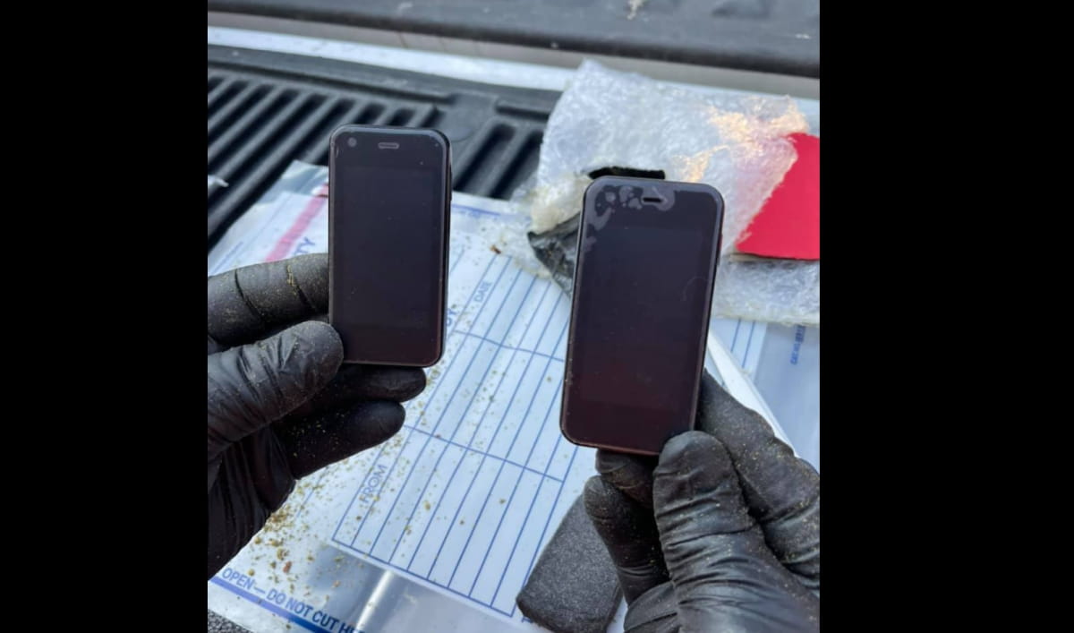 Контрабандные наркотики были изъяты правоохранительными органами, прибывшими на место происшествия. Они установили, что внутри было несколько фунтов марихуаны, табака, три сотовых телефона и зажигалка с USB.