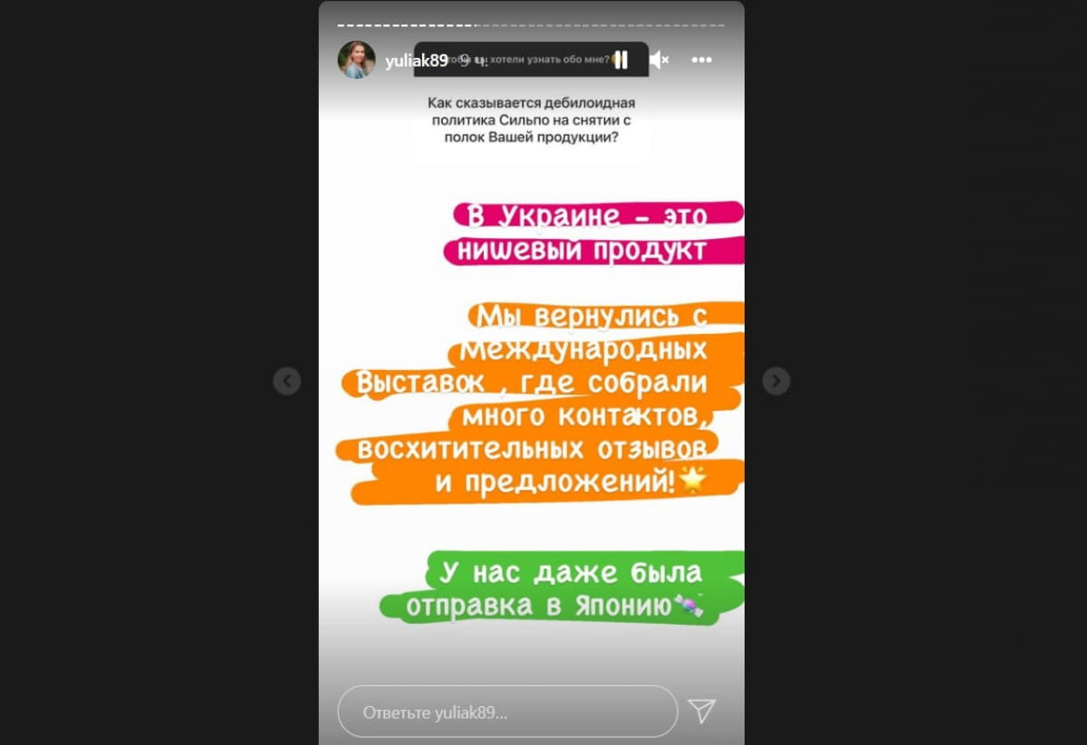 Основательница бренда здорового питания Yaro Юлия Привалова, которая недавно отметилась украинофобной шуткой и фото на фоне Кремля, заявила, что считает политику торговых площадок, которые прекратили продавать ее продукцию после скандала "дебилоидной". Об этом пишет "Дивогляд".