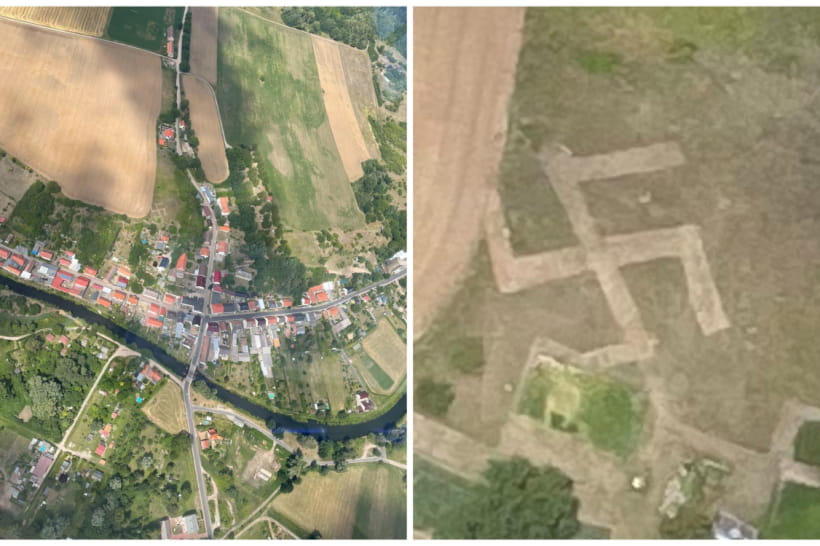 Около столицы Германии, Берлина, журналист и пилот-любитель Юлиан Репке случайно заметил траву в поле, выкошенную в форме свастики. Об этом сообщает "Дивогляд" со ссылкой на его Twitter.