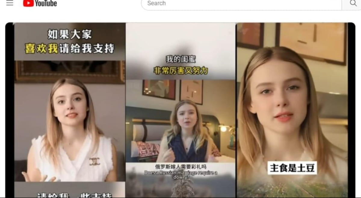 В этих видео ее представляют под разными именами, такими как Наташа, Анна или Грейс, и она выступает как россиянка, которая идеализирует Китай и выражает желание выйти замуж за китайца.