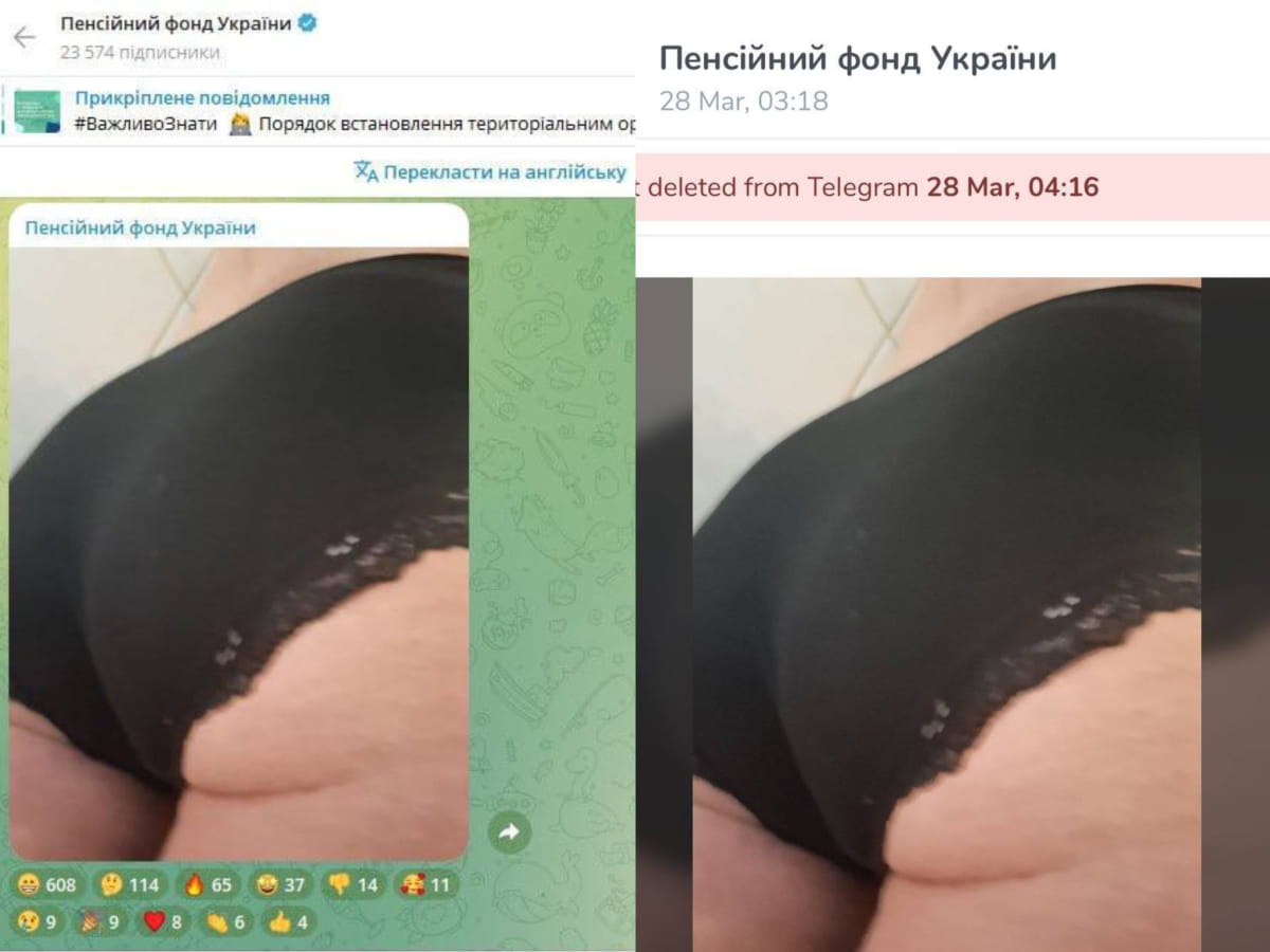 Пользователи мессенджера Telegram, зашедшие на официальный канал Пенсионного фонда Украины в ночь на 28 марта, были удивлены неожиданным контентом. Об этом сообщает "Дивогляд".