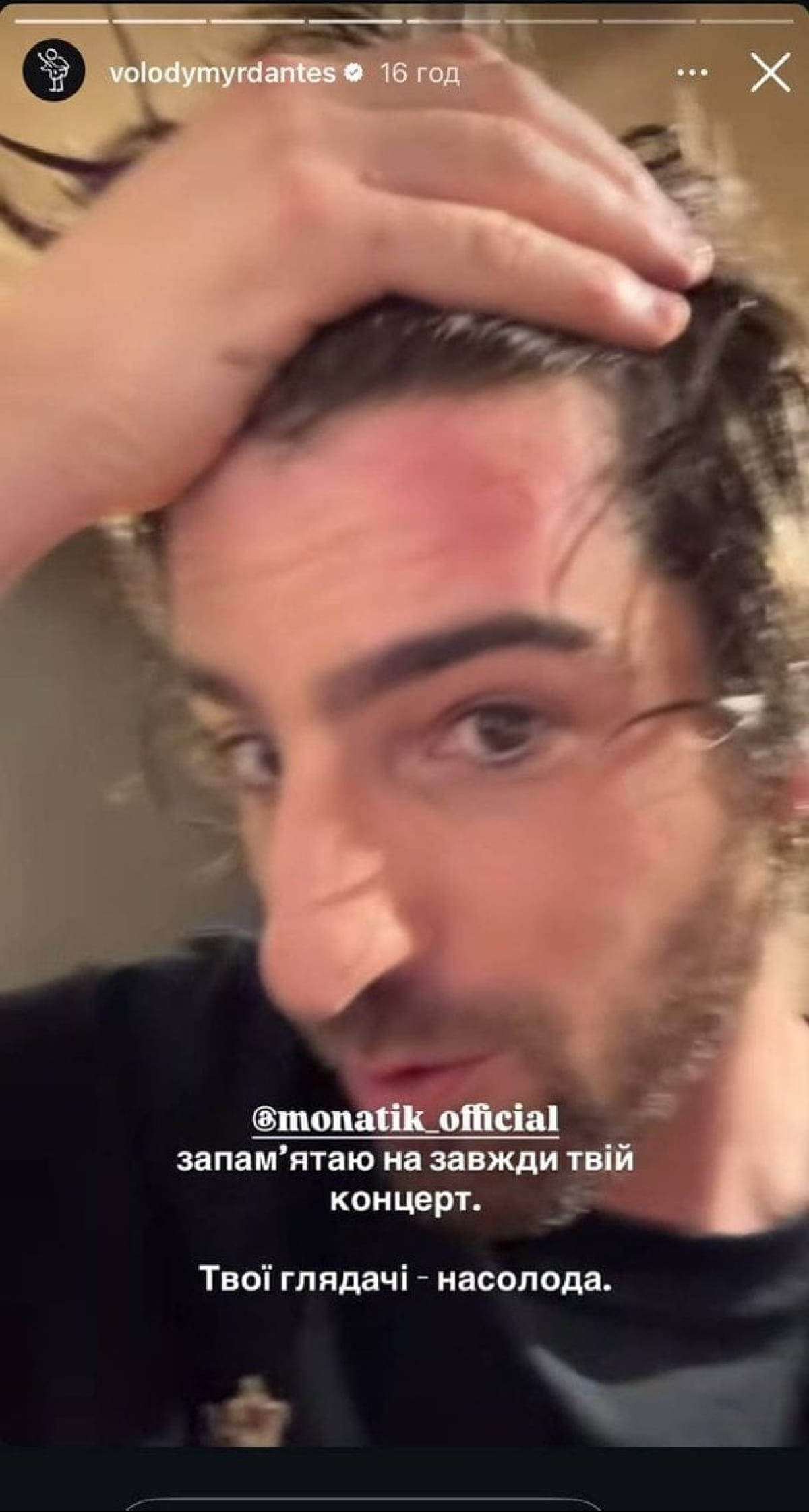 Попри травму, Володимир Дантес зберіг позитивний настрій. Він з гумором зазначив, що цей концерт Монатіка запам’ятається йому надовго. Окрім того, артист звернувся до шанувальників: