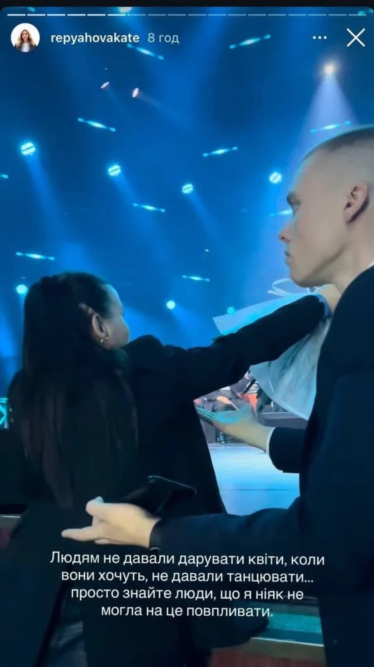 Дружина та за сумісництвом концертна директорка артиста Катерина Реп'яхова у своєму Instagram повідомила про кричущу поведінку представників сторони, що організовувала захід, а про деталі конфлікту та офіційну реакцію установи повідомляє "Дивогляд" із посиланням на пресслужбу Палацу "Україна".