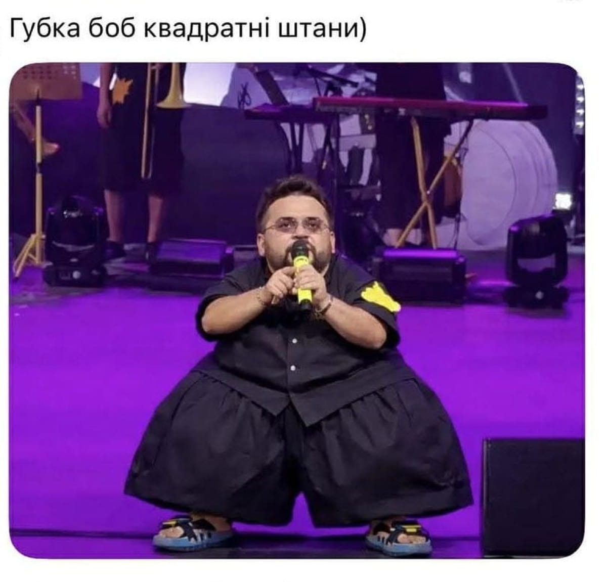 Деякі ж користувачі пішли іншим шляхом, побачивши у новій зачісці та стилі артиста схожість із популярним мультиплікаційним персонажем – Губкою Бобом. Попри те, що коментарі в мережі подекуди були досить гострими, 39-річний виконавець не лише не засмутився, а й вирішив особисто очолити цей "парад гумору".
