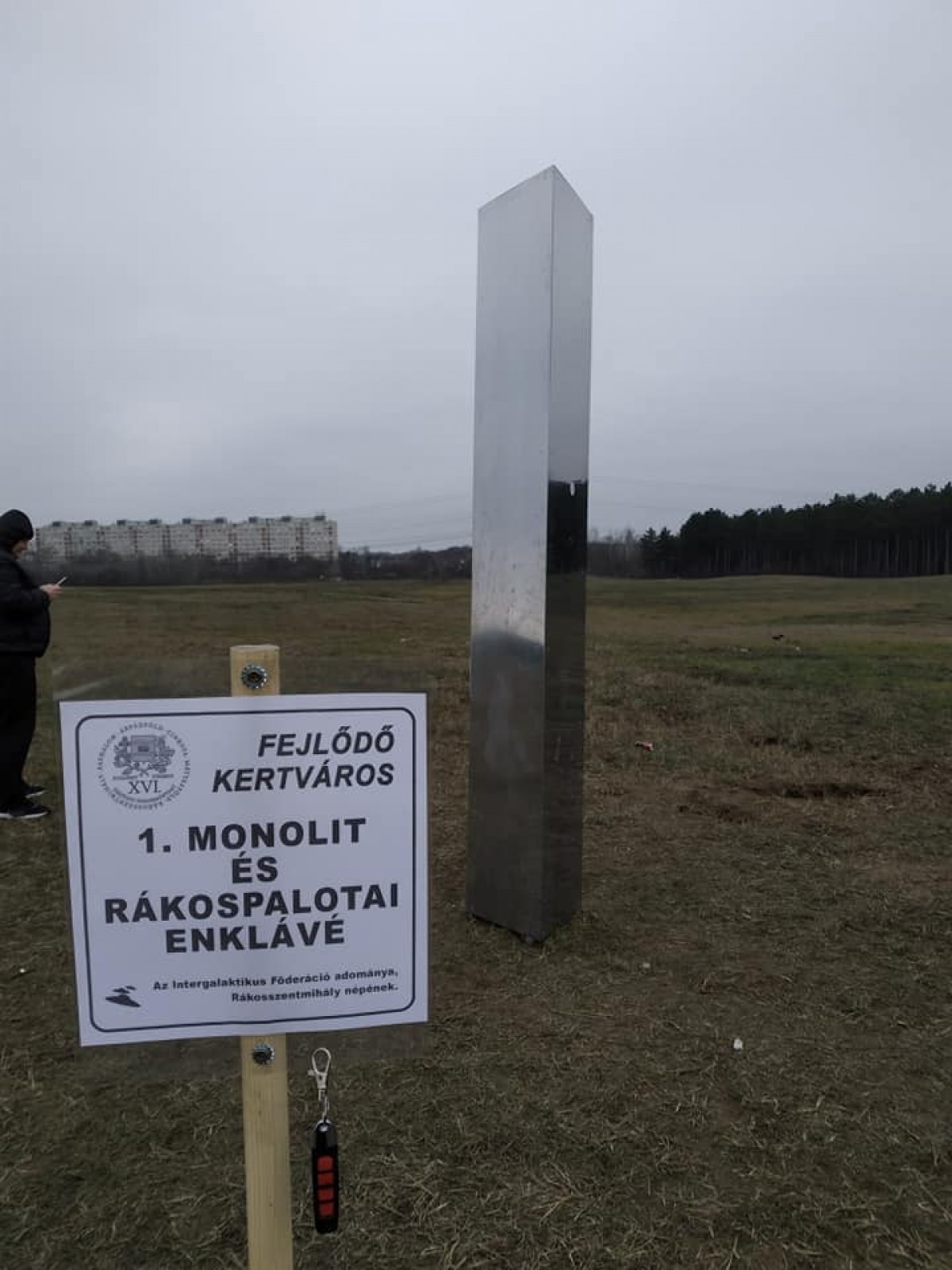 Фото із металевим монолітом людина-мем, справжнє ім’я якого Арата Андраш, опублікував у своєму Facebook із підписом: "Судячи з таблички, це подарунок від міжгалактичної федерації".