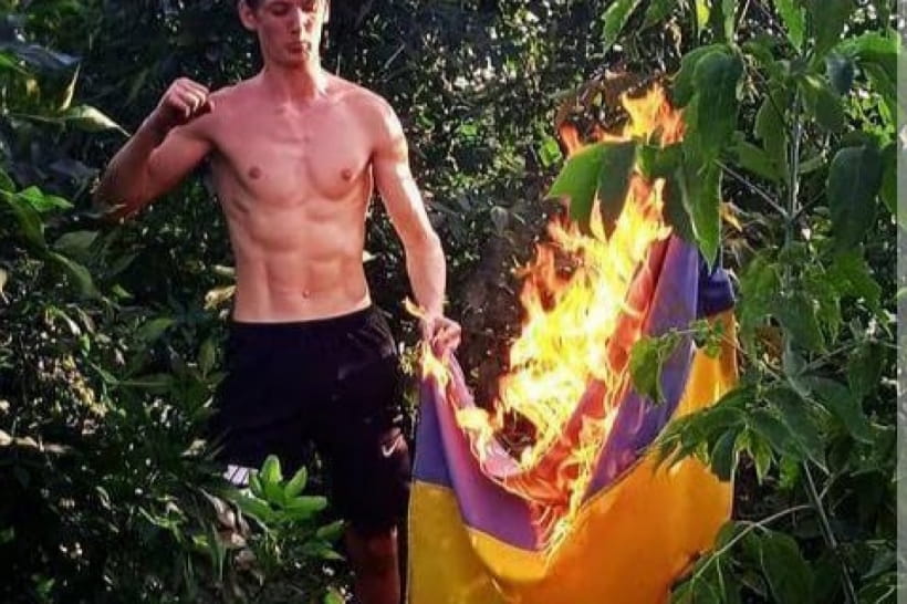 У суботу, 7 серпня, у мережі з'явилося зображення хлопця з Маріуполя, який вирішив сфотографуватися, коли він тримав у руках палаючий прапор України. Паралельно він демонстрував свої м'язи.