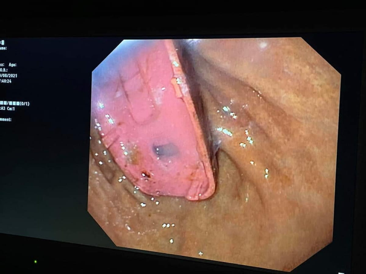 У постраждалого гаджет застряг у животі, але телефон був занадто великий і шлунок не зміг його перетравити. Паралельно з цим з акумулятора почали витікати отруйні речовини.