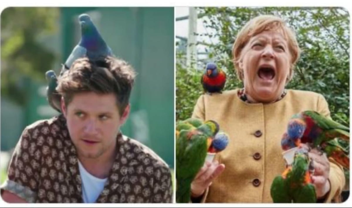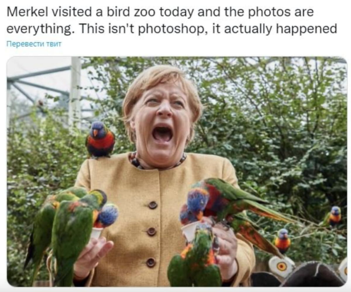 Фотографії Меркель, що сміється, з папугами миттю розлетілися мережею і одразу ж стали мемами.