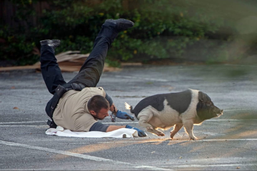 Відомо, що мешканці міста Пенсакола протягом довгого часу скаржилися правоохоронцям на те, що їх тероризує собака. Поліцейські вирушили на місце виклику, але помітили там не песика, а свиню.