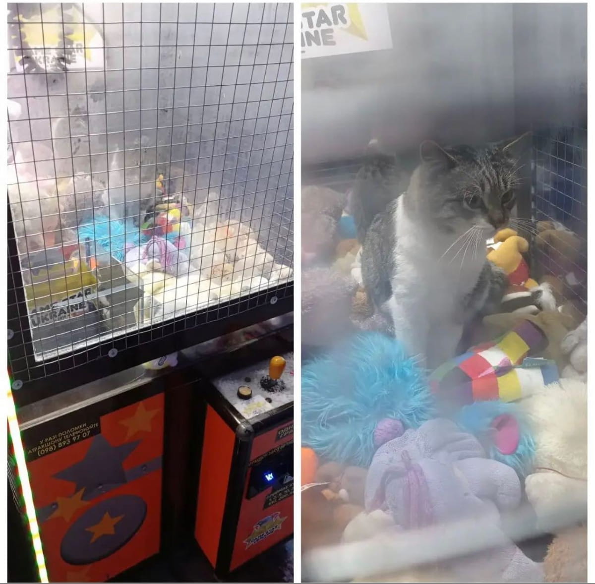 "Я не знаю, як він туди потрапив. Можливо, сам заліз. Можливо, діти запхали. Зараз кота визволили, з ним усе добре", – розповів власник автомата з іграшками.