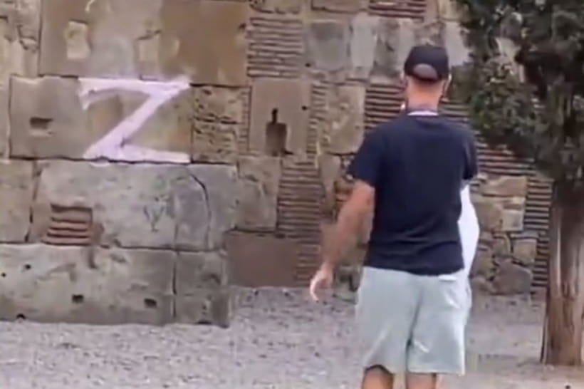 У мережі з'явилося відео, яке було знято поблизу іспанського собору, де невідомі намалювали одразу кілька символів армії окупантів. Про це повідомляє "Дивогляд" із посиланням на Telegram-канал "УНІАН".