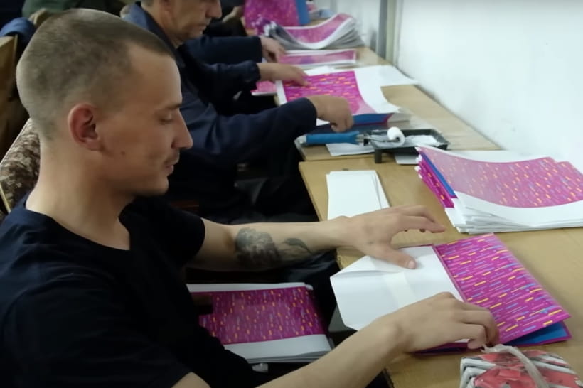 Військовий рф у полоні працює, складаючи подарункові пакети. На відміну від українських героїв після російського полону, він виглядає ситим і чистим.